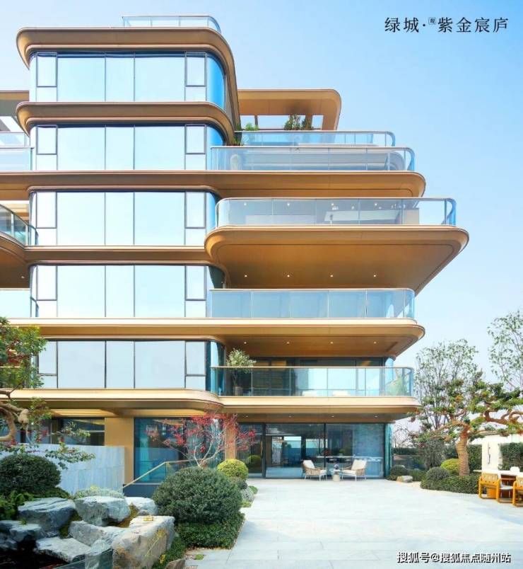 外立面设计上,项目采用香槟金铝板与大面曲面玻璃的组合,其设计语言与申花顶豪项目滨杭传麒府同款高端序列。不仅视觉效果出众,实际造价上更是远超常规标准。
