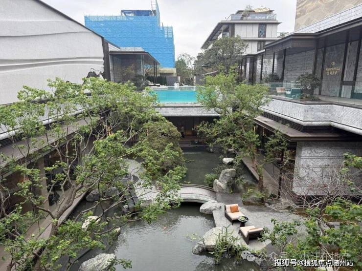 下沉式庭院:约1000方,复刻《溪山清远图》,从东侧“四水归堂”之门,经“十八学士”下沉庭院,景观设计层层递进,通过整面落地玻璃让下沉式景观和归家大门组合一整体,视觉冲击感强,悬挂户外泳池设计,地上地下互相成就景观视野。