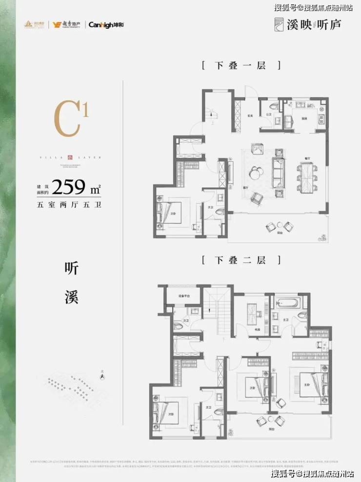 作为四层低密纯叠排,溪映听庐在户型设计上以五房、LDK餐客一体,横厅+四间卧室朝南,阳光平权。