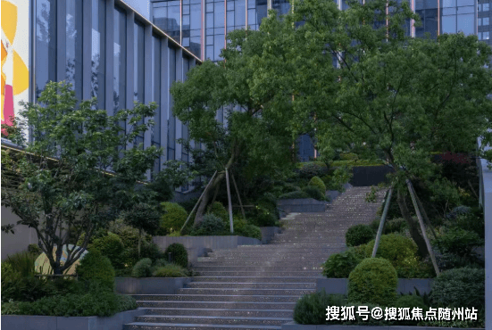 景观设计:以“山林”为主题,通过多层绿植、台阶、玻璃栈道等元素,打造立体式公园商街,营造自然与城市融合的景观体验。