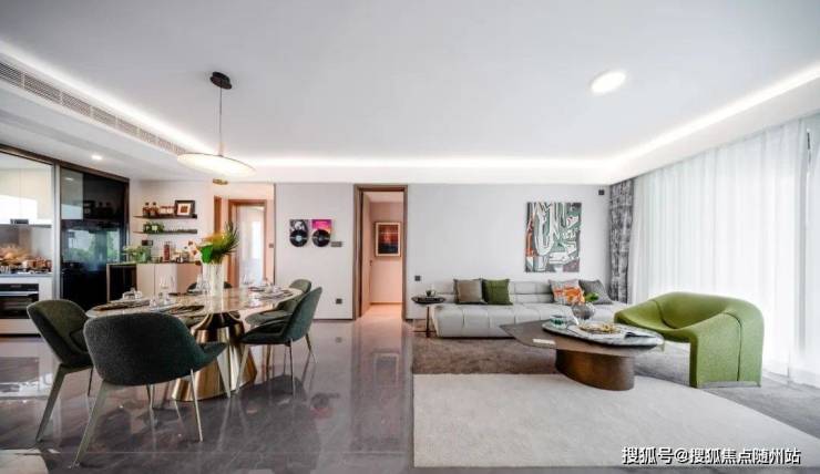 将餐厅、厨房、玄关设计成一体化空间,从进门放下钥匙,到与下厨者的热情招呼,再到落座用餐,一气呵成。