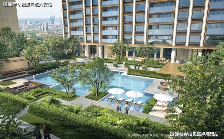 项目占地虽不大,却独取闹市中的一方清幽。西侧紧邻南门江的支流沙里吴河,绝大多数住户都能一线瞰河,享受自然风光。由主入口的叠水开始,水系贯穿整个园区,成为视觉审美的灵魂。“一轴四境”的匠心布局,将大堂、水院、花园、草坪等一一串联,绿洲与水系相伴,归家之路如桃源之境。最令人心旷神怡的,莫过于约400㎡的景观戏水池,绿植环绕四周,有如热带雨林,让人仿佛置身于海岛度假酒店。