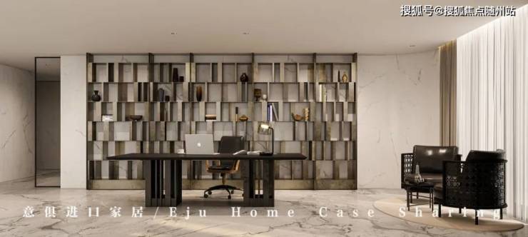 客厅的另一边是开放式书房,也是男主人日常接待客人最常用的区域。