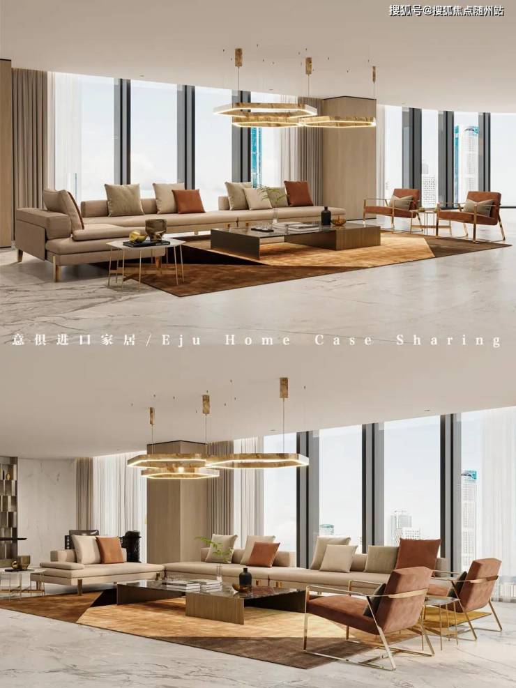 男主人特别偏爱Henge和Minotti这两个意式轻奢品牌,天然材质的奢华感与深邃的肌理感,能让空间自带“总裁式”的氛围。