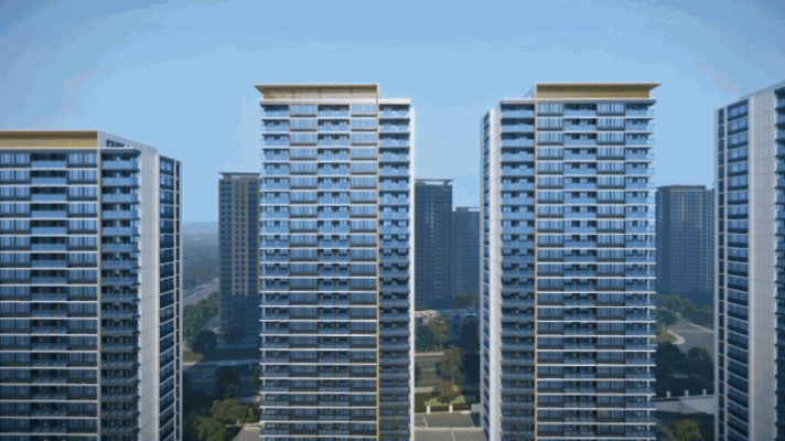 由银灰色、灰色铝板搭配仿木纹铝板线条,顶部点缀金色“皇冠”造型,各种细节都在散发江海之城“最高颜值”的气质。部分房源配置三玻两腔low-E玻璃+中置百叶,隔音隔热效果大升级