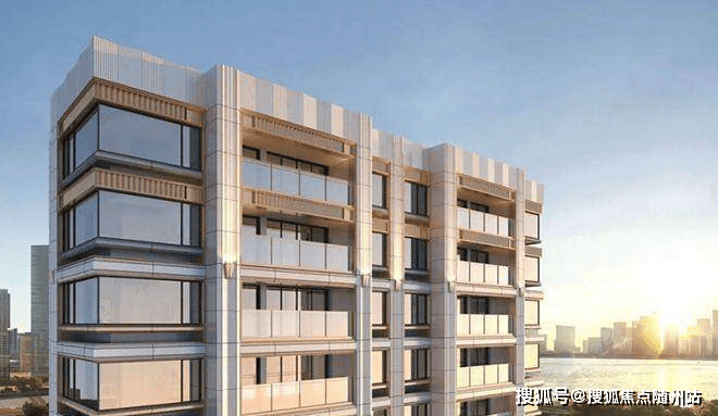 立面结构采用西方古典建筑经典制式“横三竖五”进行立面切分,如基座、中段、塔冠分为三段式,竖向阳台、飘窗分为五段式,极致中轴对称。设计以承载美为出发点,采用纯粹和质朴的空间和材质,从古典形态中提炼出简洁而有力的符号,强化了建筑的形式感和空间感。