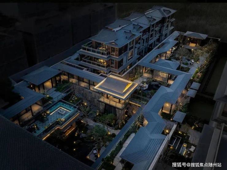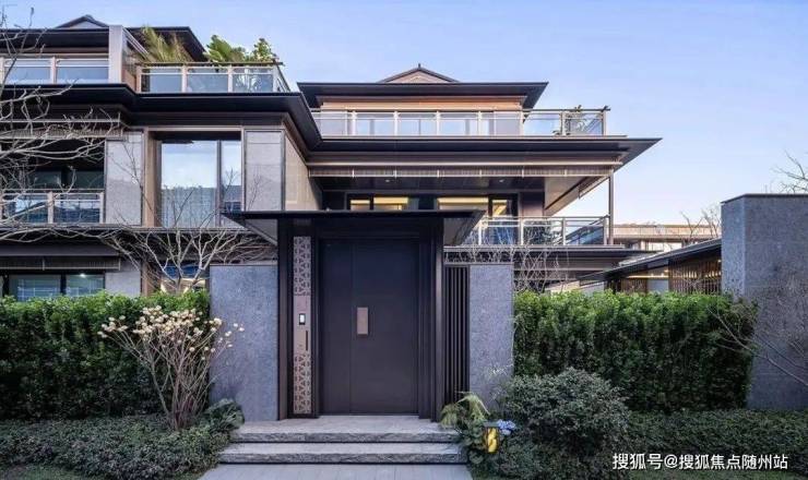 住宅立面设计延续了宋式建筑水平、简洁、飘逸的审美精髓,私人庭院内采用传统园林“堆山、叠石、理水”的造园手法,并以建筑、灌木、小桥和流水,构建起高、中、低三个层次的景致。