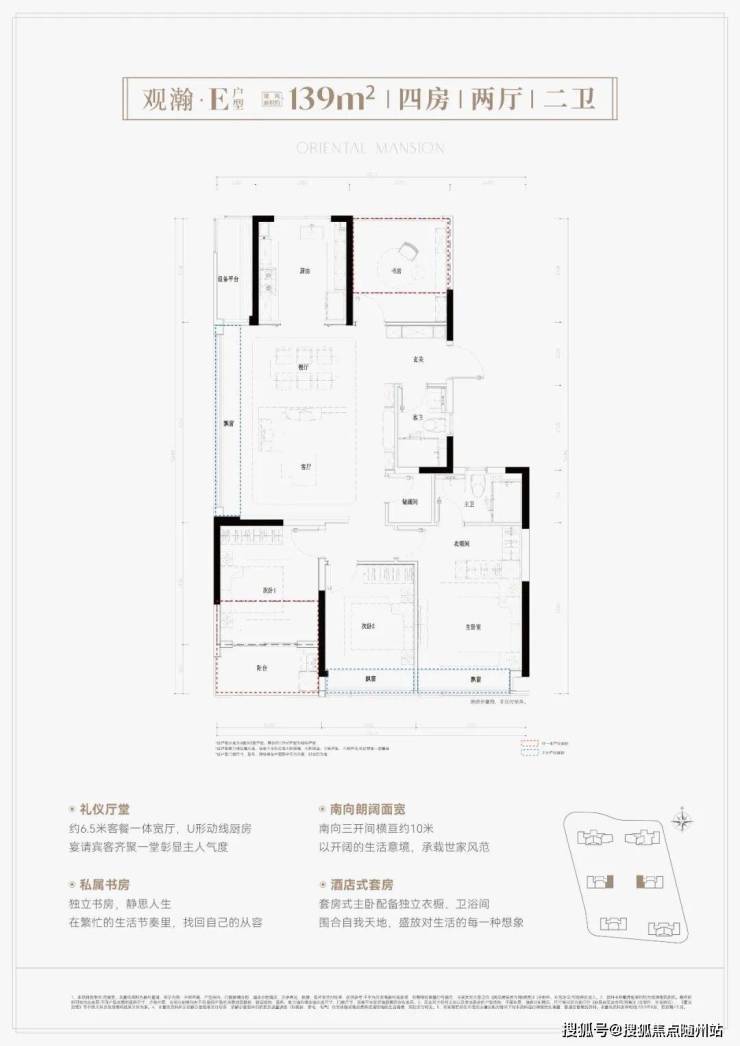 人性化空间布局提升居住舒适度。各户型均做到方正通透与人性化布局,如103平方米三房实现南向三开间,139平方米四房满足二胎家庭和三代同堂居住需求。建面约139平方米大户型则打造四房两厅两卫,分为横竖两款,全部为边套,两梯两户设计。该户型得房率高达约93%,南向3个卧室,采光优良,客厅面积达到约37平方米,充分满足二胎家庭或三代同堂的居住需求。