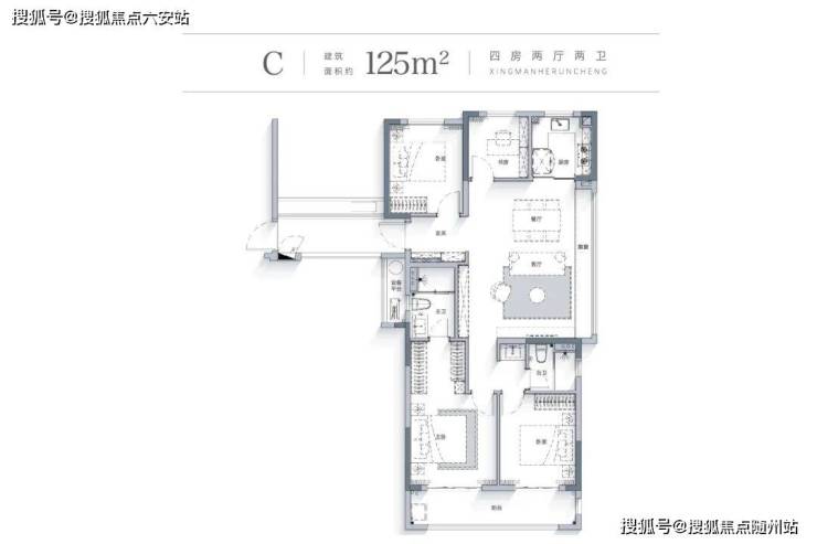 建面约125方户型,做到了“四房横厅”的规划,不仅满足了家庭的居住需求,更提升了居住的品质。大横厅的设计,轻松容纳多人聚会。主卧尺度感阔绰,居住体验更具优势。