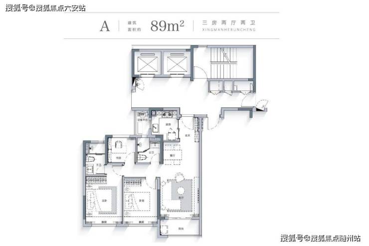 本次加推的建面约89方“爆款三房”,空间利用率非常高。