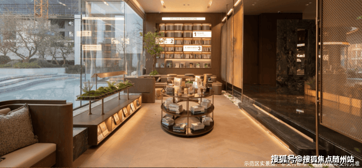 嵌在戏水池一侧的社区活动中心里,紧贴戏水池的一边特地做了下沉式书吧的设计,并且装上了超大面的玻璃,当你坐在这儿,就像漂在水上一样,很自然就放松下来了。