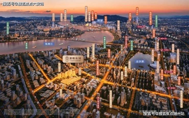 潮映杭园的核心价值,首先在于其难以复制的战略性地段。项目直线距离钱塘江金沙湖各约1.8公里,恰好落子于两大城市发展引擎的黄金交汇点,是名副其实的“双核板块”受益者。向西,是已然醇熟的金沙湖CBD,繁华近在咫尺;向东,是面向未来的东部湾新城,澎湃的发展潜力可期。这种“既享当下,又握未来”的地理占位,赋予了潮映杭园超越单一区域价值的复合增长动能。