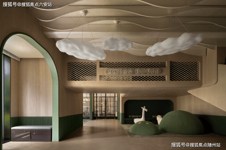 室内娱乐区以《飞屋环游记》为设计主题,让人们仿佛置身于天空之境,飞屋尽头的回转滑梯直抵“海洋泡泡池”,天空和海洋的奇幻场景瞬间切换,童趣无穷