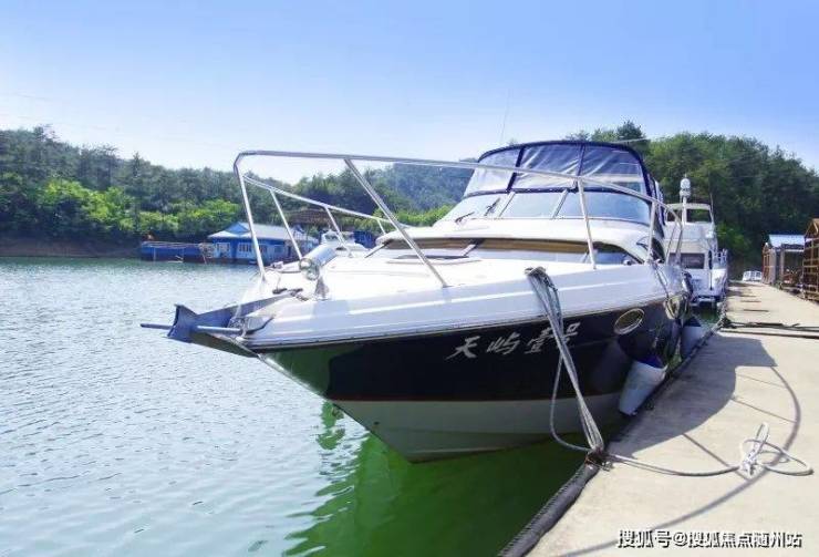蓝天、湖山、小岛、游艇