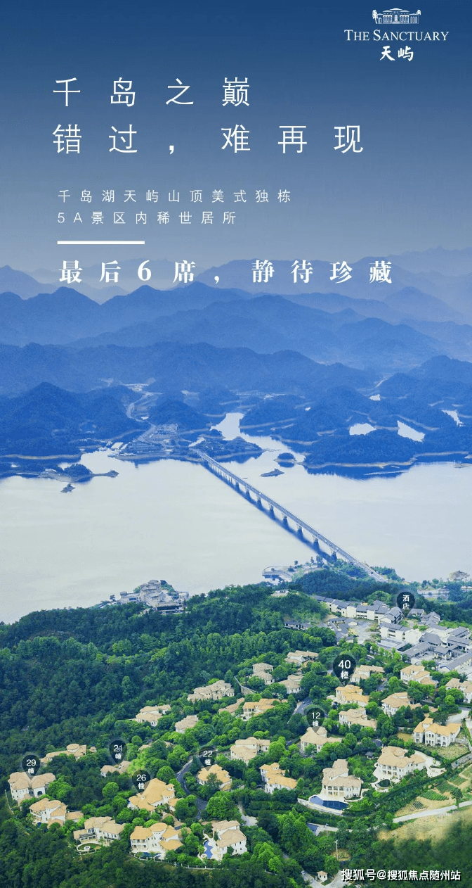 天屿,“天下第一秀水”杭州千岛湖的当前唯一山顶景观别墅,被评为“中国十大超级豪宅”,齐名汤臣一品、北京玫瑰园、龙湖颐和原著,以屹立巅峰之姿,致献当代豪门!