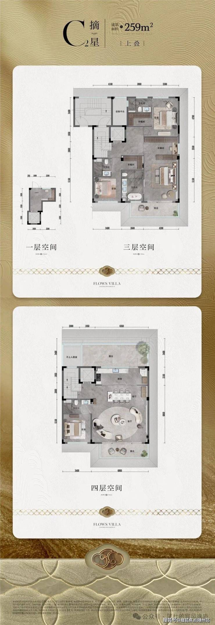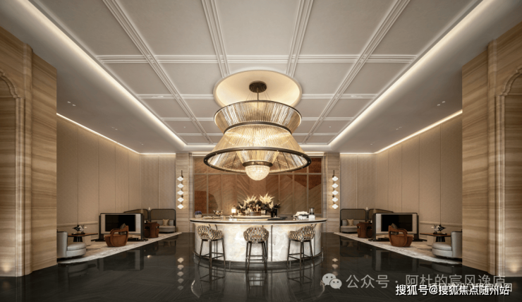 建筑立面采用了石材、大面积玻璃为主要材质;细节之处设计师搭配白色石材和鎏金线条,借鉴蜀山先照寺的重檐叠韵,独创镂空金属格栅,赋予立面吉祥如意,让建筑既是居所,亦是可传世的艺术珍藏。