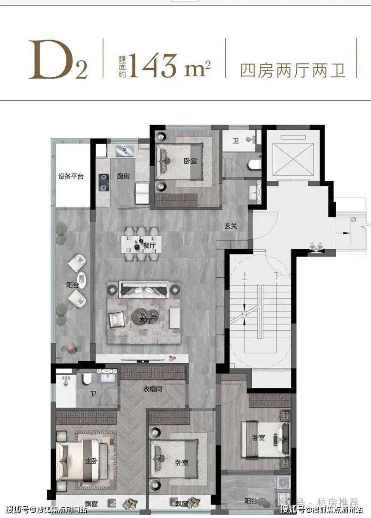 如果说前面的户型更多的体现了实用性,那么143方的户型还实现了尊贵感。