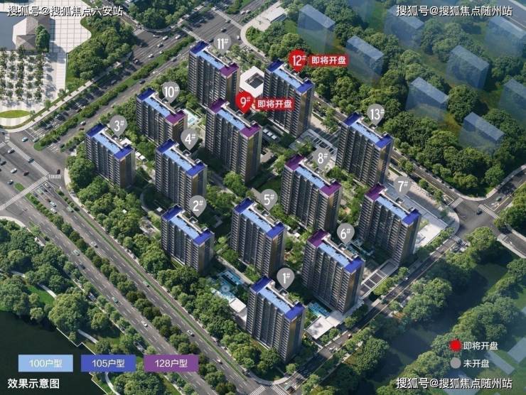 - **建面约100㎡三居**:南向四开间+12.4米面宽+双联阳台,270°环幕采光,得房率超90%,主卧套房设计,满足年轻家庭一步到位的改善需求。