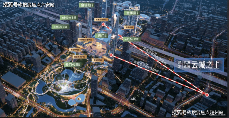 地理位置与交通:建发云城之上坐落于杭州云城核心区,紧邻杭州西站这一现代化交通枢纽,通达全国各大城市