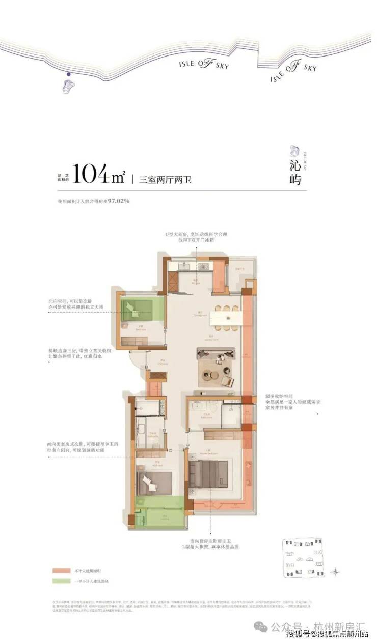 建面约103㎡明星边套户型,是目前市面上实用率最高的三房格局,得房率高达100%,绝对的“0公摊”,主卧竟然设计270°转角飘窗,通常只在市中心千万级豪宅中才会看到,是全杭州小户型中的唯一级了。