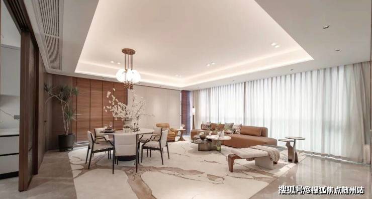 餐客厅采用LDKB一体化设计,连通封闭阳台形成约55㎡的“无界方厅”,空间感强,功能灵活。