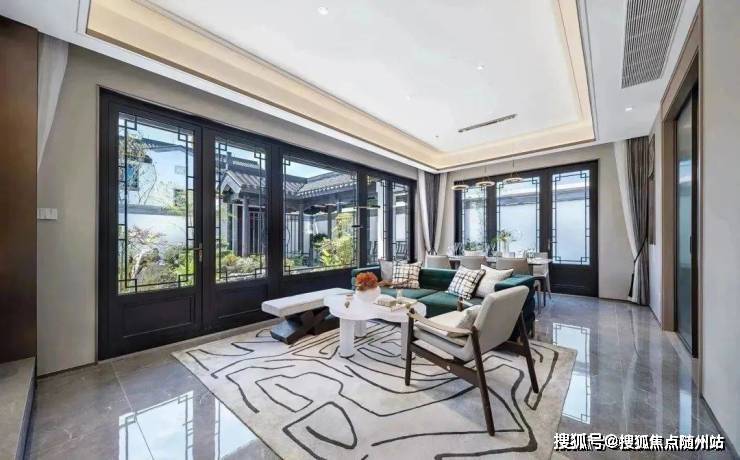 白墙黛瓦、飞檐翘角、花窗亭廊,建筑融合苏派与徽派精髓,再现《千里江山图》的淡雅意境。全系三开间朝南设计,大横厅连接观景露台,采光通透;一楼直通庭院的长辈房,动静分区合理,兼顾代。