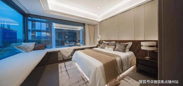 主卧套房给足了主人居住的尊贵感与舒适感,270°无柱环幕飘窗,打开瞰景的广角视野,抬头星河璀璨,俯瞰风光旖旎。