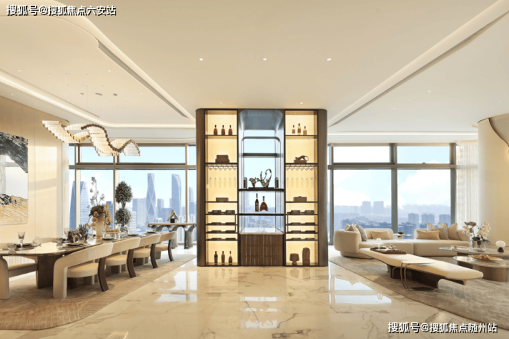 东面是顶豪大平层,寓意紫气东来,让董事、总裁、精英在步行范围内随心切换工作与家庭,亦可就近收获更多人脉与投资机会。而三层以下全公区的超震撼设计,让日常的生活充满更多可能。