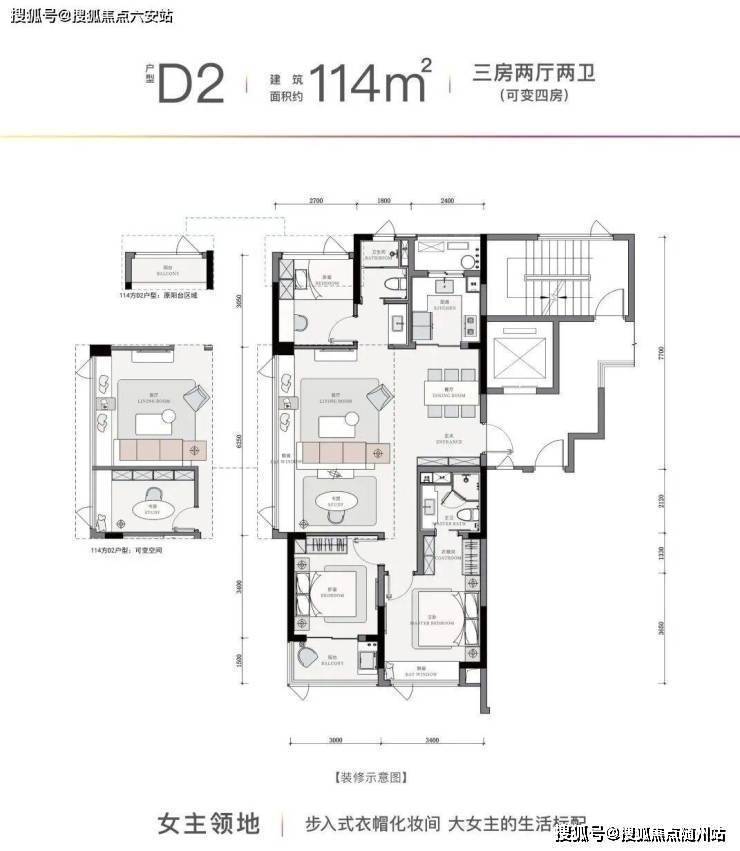 建面约114㎡户型,带有约6.3米宽客厅,开放式书房也可作为房间,轻松转变成“3+1房”,即便三代同堂,居住也是毫无压力。