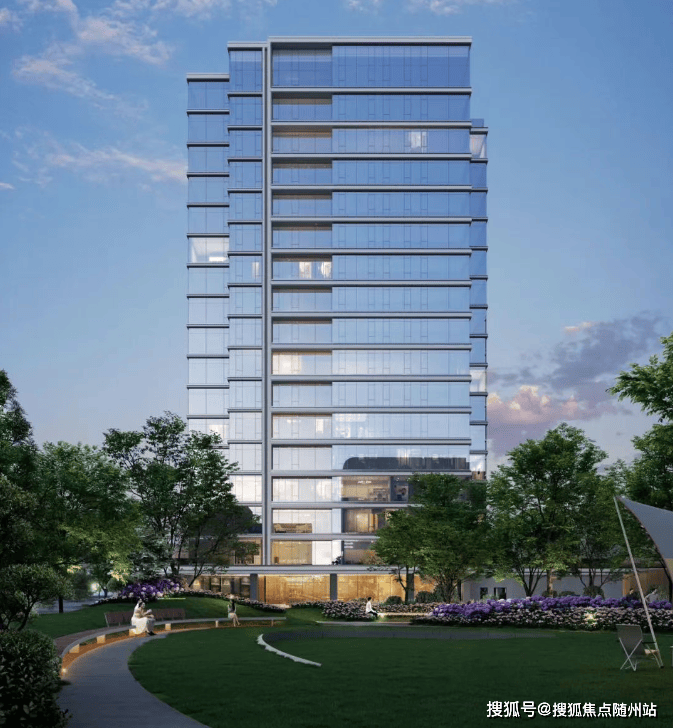整个园区以围合式布局展开,七幢建筑借鉴中国古典园林的精髓,最大楼间距达到了63米,使得每栋楼都能享受到270°的开阔视野,仿佛是一座座隐匿于花园中的岛屿。为了与景观相呼应,园区立面采用“水晶天幕”设计,线条纤细,使建筑宛如天空中垂下的纯净湖面。
