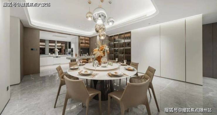 生活在此,南向空间可以打造为沙发区、开放式书房,也可以改造为雪茄吧和私家影院;约32㎡餐区放得下12人座的大圆桌,大可尽情款待八方来客。