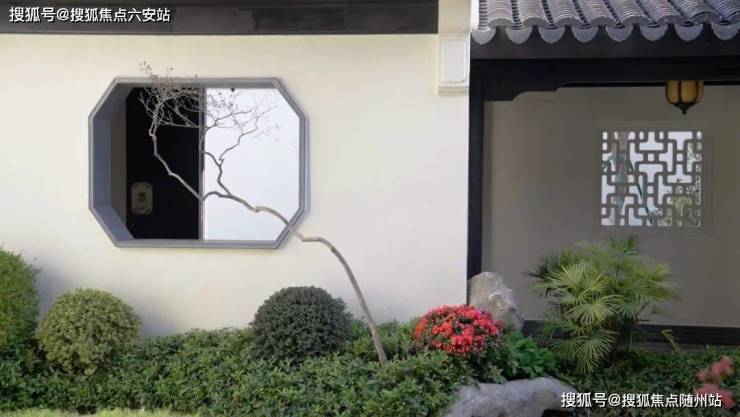 白墙黑瓦、飞檐翘角,建筑墙体描绘着江南的质朴毓秀,再加上花格窗棂的点缀,白墙小院中的几片芭蕉叶,几株翠竹,透过窗棂隐约可见,中式合院若隐若现的呼吸感,将外延借景的灵巧表现得淋漓尽致。