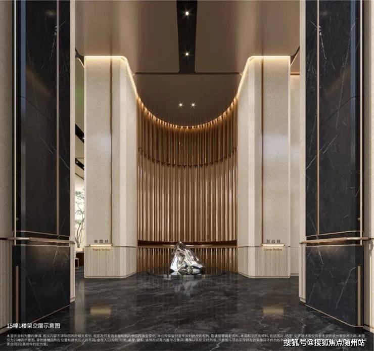 设计理念:以“水波、玉石”为母体,融合意式手工大宅精髓与东方温润美学,打造鎏金地标建筑。