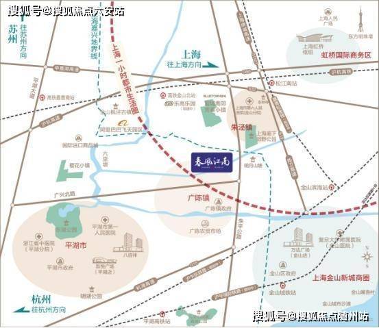 项目落子于平湖广陈镇黄金轴心,与上海金山廊下镇仅一河之隔,自驾通过莲廊专线2.5公里直达上海,距沪乍杭高铁金山北站约20公里,未来规划中的沪平盐城际铁路(2027年通车)将实现“高铁圈”通勤。