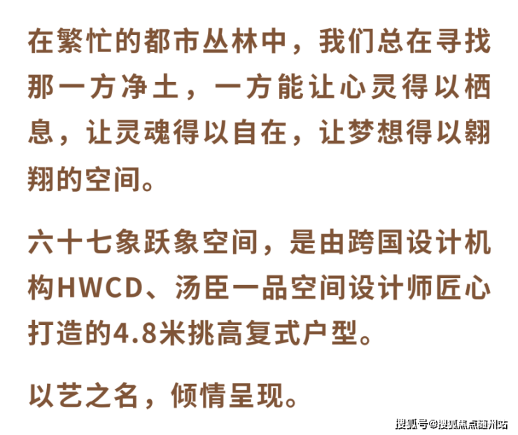 建筑由gad事务所合伙人&设计总监、“亚洲建筑协会建筑奖”获得者张微匠心构造,室内艺术空间的创作者包括曾创作“汤臣一品”等佳作的无间设计事务所创始人、AndrewMartin国际室内设计大奖全球年度大奖中国大陆首位获得者吴滨先生,HWCD跨国设计机构创始人林宏俊先生,日本《全能改造王》及东方卫视《梦想改造家》常驻嘉宾、被誉为设计“神之手”的本间贵史老师,以及香港CCD设计总监、设计界的奥斯卡奖“金钥匙奖”获得者郑忠老师,他们将六十七象视作艺术精品精心雕琢,每一处线条、每一抹色彩,都流淌着非凡的审美与灵感.