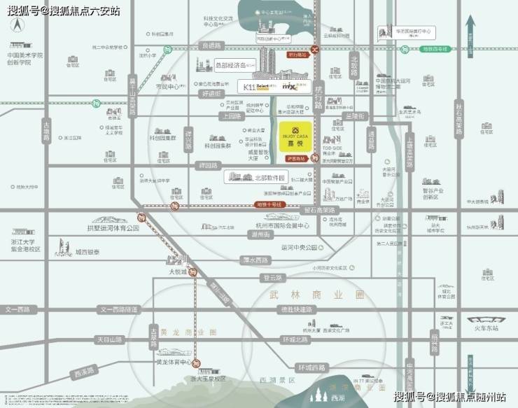 地理位置优越:位于杭州城北CBD核心区域,紧邻地铁4号线和10号线交汇站,交通便利。
