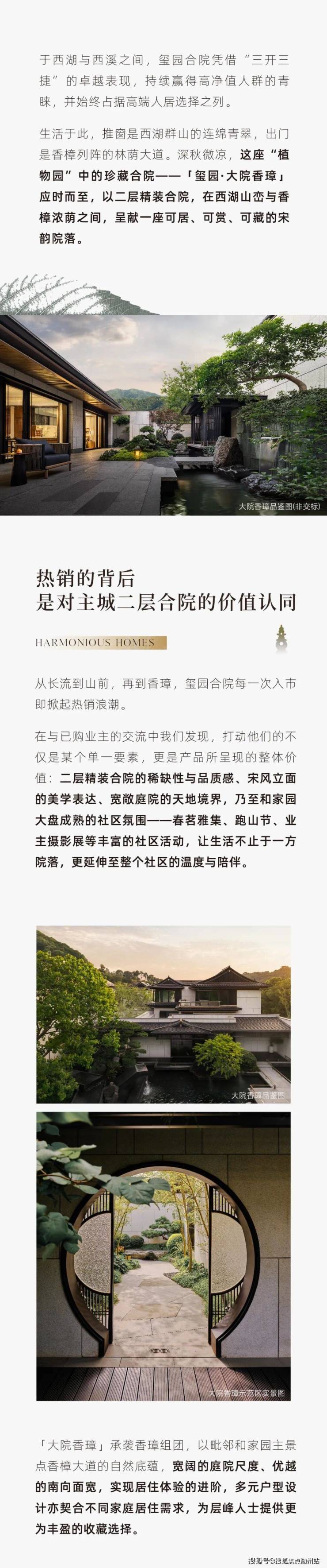 杭州西湖区和家园玺园·香璋合院房价详解,主城0.4容积率宋风合院稀缺上市,西湖群山环抱,香樟大道为伴,主城区最后0.4容积率的传世资产正迎来收官时刻。