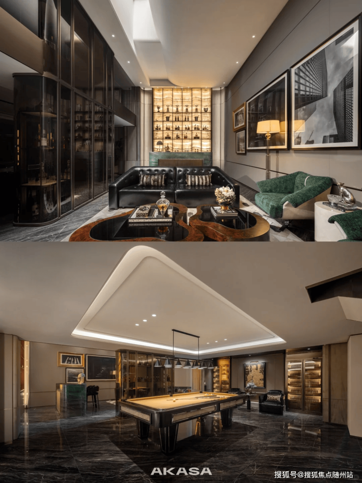 色彩设计以香槟金色作为主色调,营造古朴、大气的形象。奢华石材作为深色点缀,使葱郁的景致层次更为丰富,宛如一幅和谐细腻的中国画。