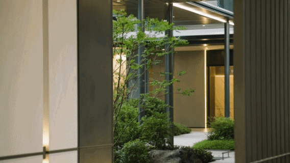 暖色调立面之上,6栋高层以竖向线条绘制出公建化的立面图腾,全景玻璃与大面积铝板演绎出一幅通透而富含质感的“全景屏”画卷,将建筑与空间美学实现深度融合。园林之中,望阙绘就了一幅江南名园与高奢酒店的意境交融。四季酒店的灵感在这里流淌,酒店式的落客区域,开启了一场关于“未来生活稀缺感”的深度探讨。