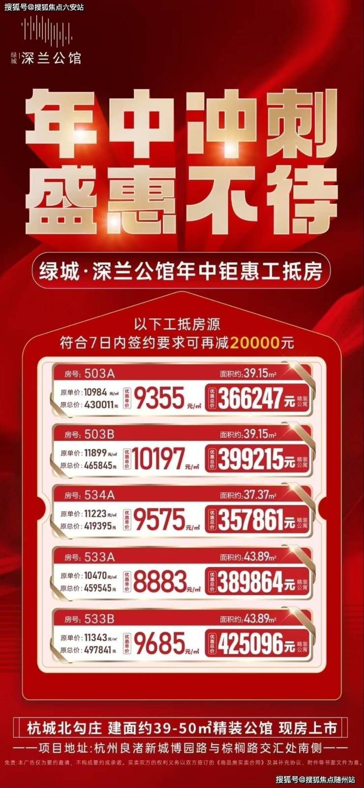 作为杭州主城稀缺的40年产权现房公寓,深兰公馆以单价1.6万/㎡(部分房源)入市,较周边二手房(2.3万+/㎡)形成30%价格倒挂。