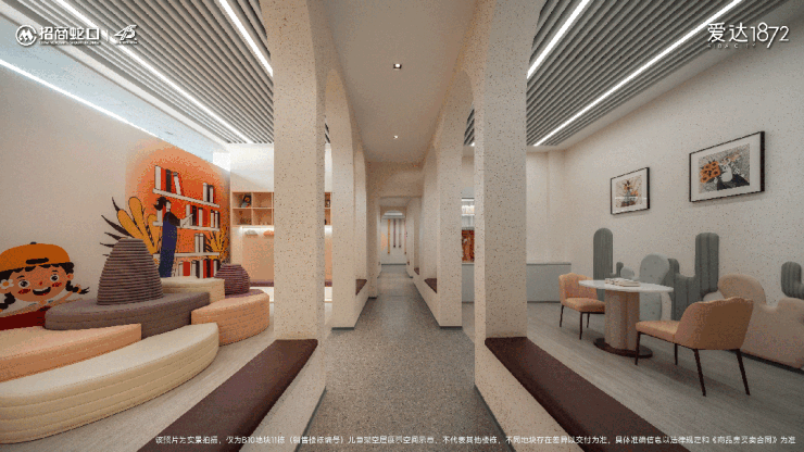 据统计,爱达1872的业主中,80、90甚至00后占比较高,所以作为一个青年聚居的社区,儿童空间的打造至关重要。