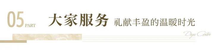 时代在变,美好生活的向往不变。大家服务始终将业主的生活所需放在首位,为贴合业主需求,建立女保安梯队,贴心为女业主提供夜间陪同服务,让归家更安心;提供暖心服务,一场卫生保洁、协助家具搬运、一束乔迁鲜花,让入住更轻松。并立足大家服务特有的“134亲情服务体系”,春启新意、夏送清凉、秋语家话、冬至温暖,用四季不同的活动,直抵人心的温暖。