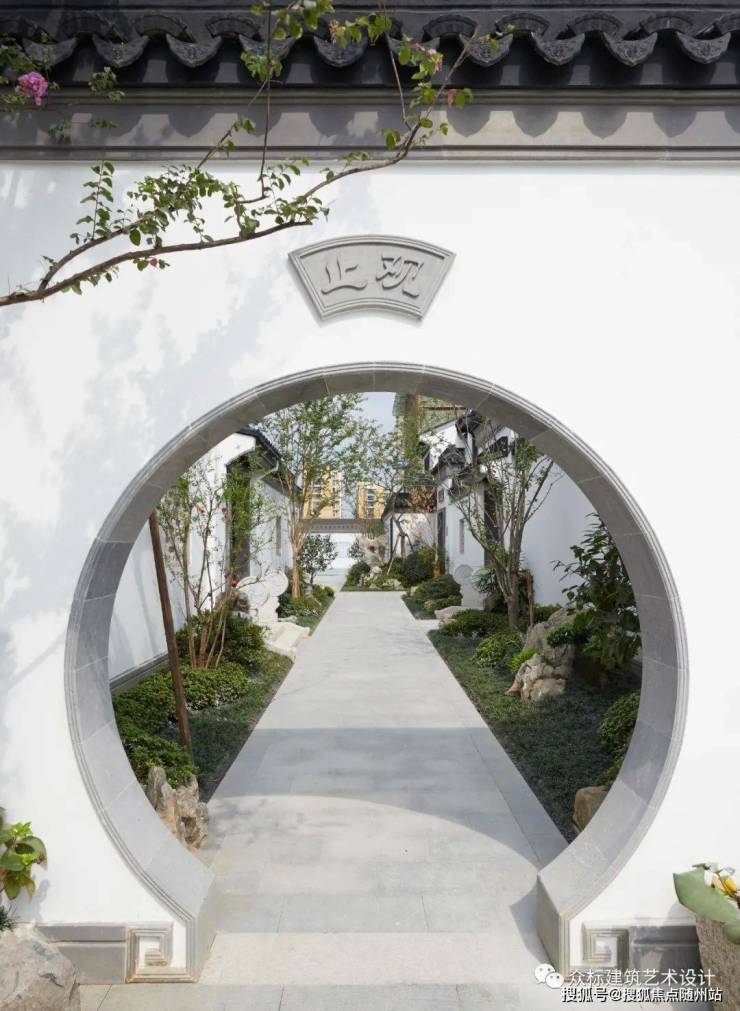 社区空间的变化借鉴苏州园林空间设计的手法,通过运用植栽及构筑物,不断细微地收缩、分隔、放大或转折空间,造成多层次的景观变化,同时通过漏窗、门洞、门廊等呈现出精街深巷、曲径通幽、步移景异的空间感受。