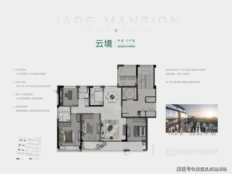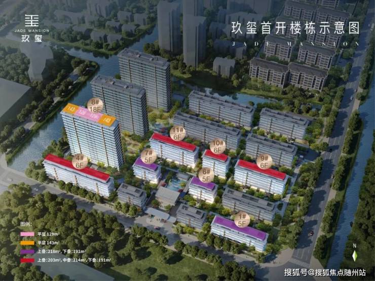 主力户型:四居,包括建面约129㎡、143㎡的高层户型,以及建面约190~224㎡的叠墅户型。