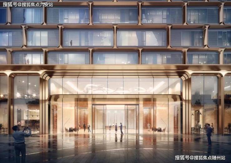 项目以“城市观景台”为设计理念,外立面以金色铝板曲面线条呼应钱塘江潮涌。