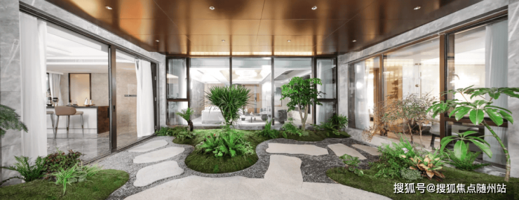 滨悦城户户都有约40㎡的深U形空中花园。除了室外的景观,滨悦城还在每层都设计了花园露台,约480㎡的户型更是做到了每户配置宽约5.3米,深约8.1米的空间私家花园。