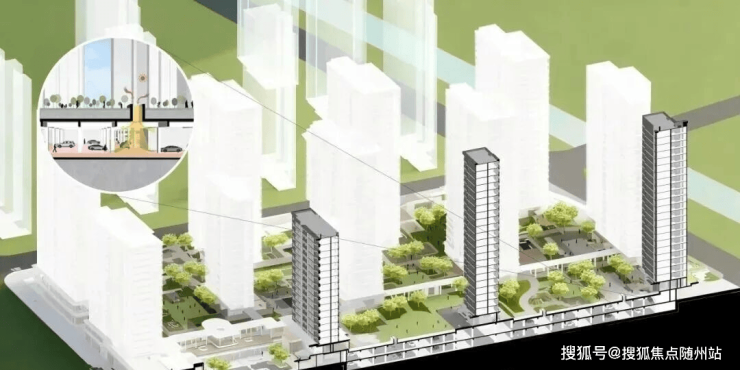 为彻底消融城市与社区的界限,项目以“超级底盘”重构社区基座。通过抬高地库、整合车站与商业配套,将地下空间转化为多功能垂直枢纽。
