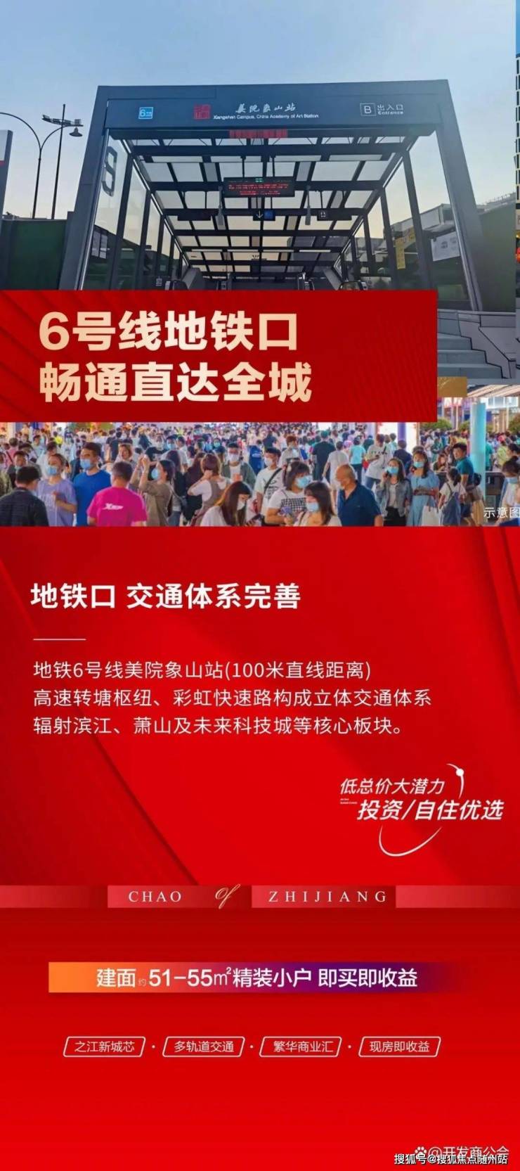【地铁6号线美院象山站】距离地铁 6 号线象山美院站约一百余米(2020年10月通车),途经火车东站、奥体中心、钱江世纪城、滨江,实现与主城互动!至2020 年亚运会之前杭州 10 条地铁线将全面贯通。届时 6号线可以和 1、4、5、2、7、9、号线换乘,可以说乘坐地铁就可以通达全杭州。
