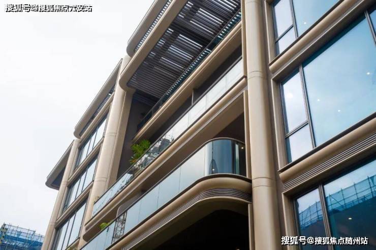 高层立面用上了大面积铝板与玻璃相结合,配合斜切工艺和“油画框”式设计,提升采光与景观视野。香槟金色铝板搭配斜切工艺,阳光下建筑通体镀上一层暖金色,金属铝线修饰的窗景宛如嵌在“金色画框”中。
