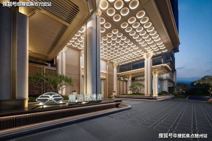 项目“金镶玉”的温润、“天圆地方”的形制,彰显江南望族的尊贵礼序。小区大门是业主的“第一张名片”,潮语臻境府用4根罗马柱撑起约9米挑高门庭,30米超宽幅迎宾界面铺陈,两侧镜面水景映着晨光,呈现高奢酒店的仪式感。这种不计成本的投入,彰显了开发商打造区域标杆作品的决心,也使项目成为市北西板块名副其实的地标性建筑。
